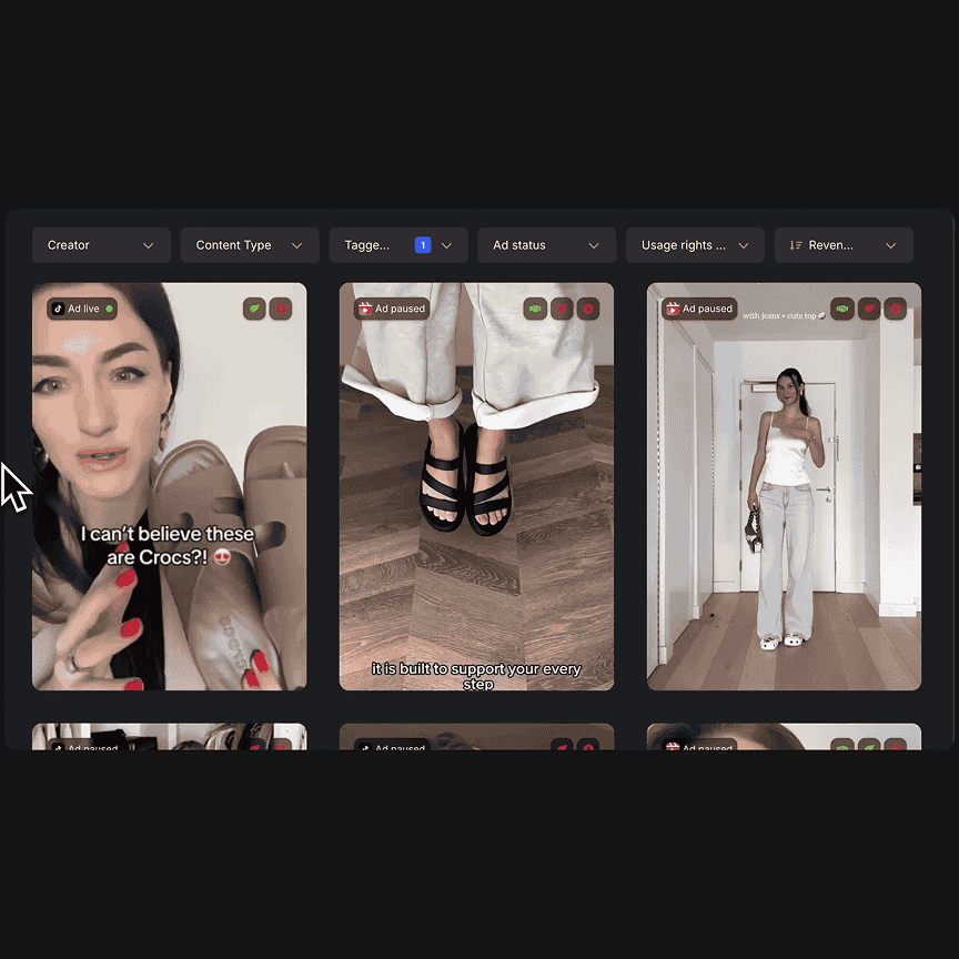 Deploy creator content directly into Meta, TikTok, and YouTube ads.